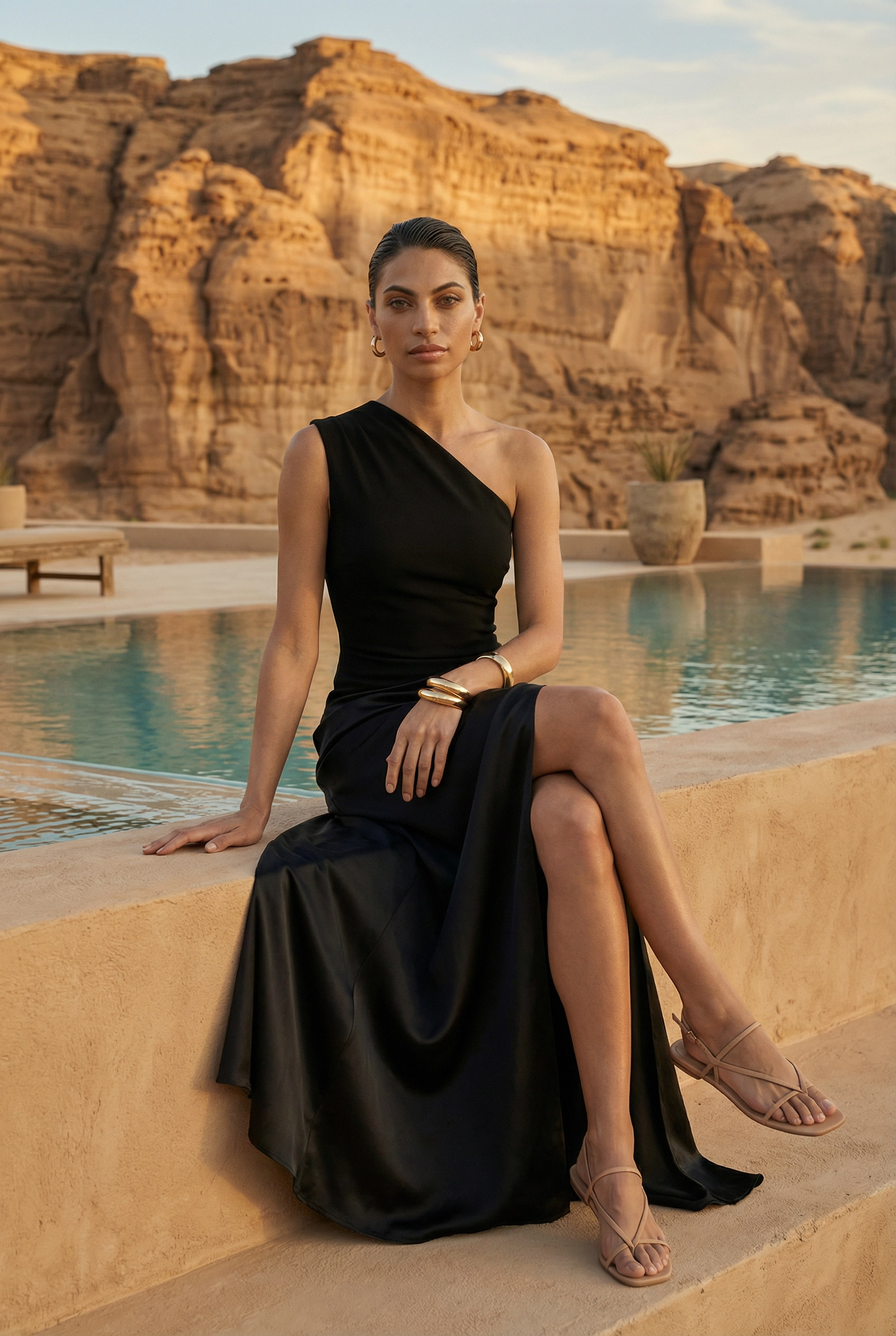 Canyon Satin One-Shoulder Gown
