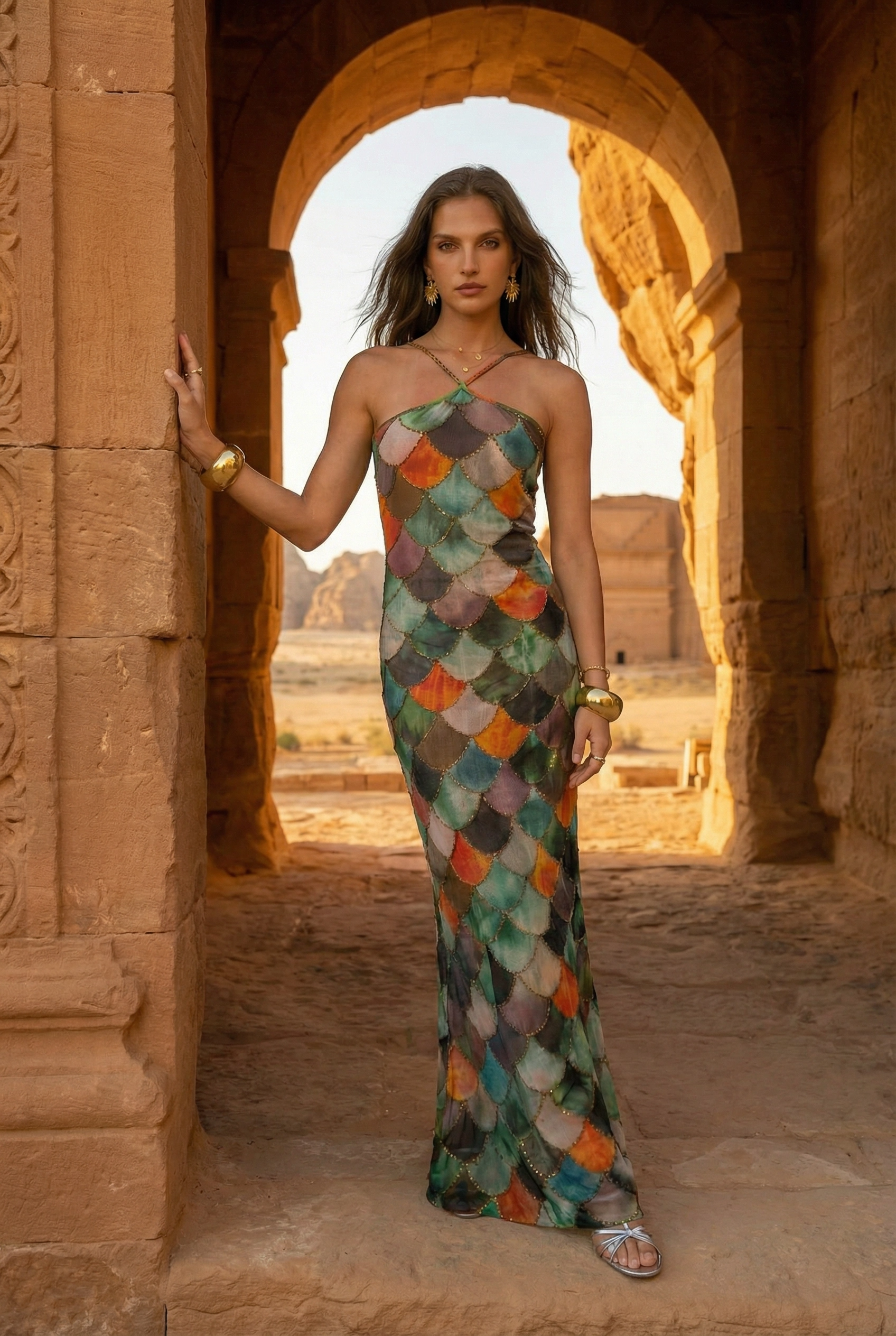 Hegra Scale Halter Maxi Dress